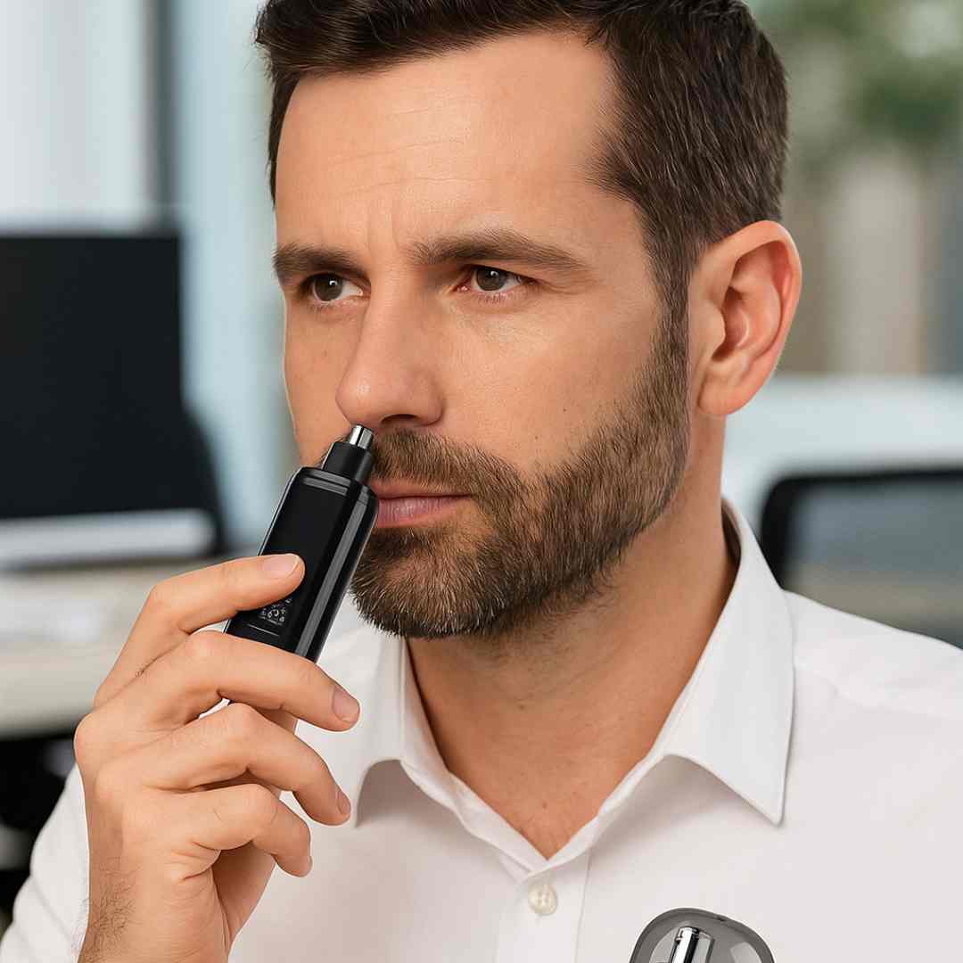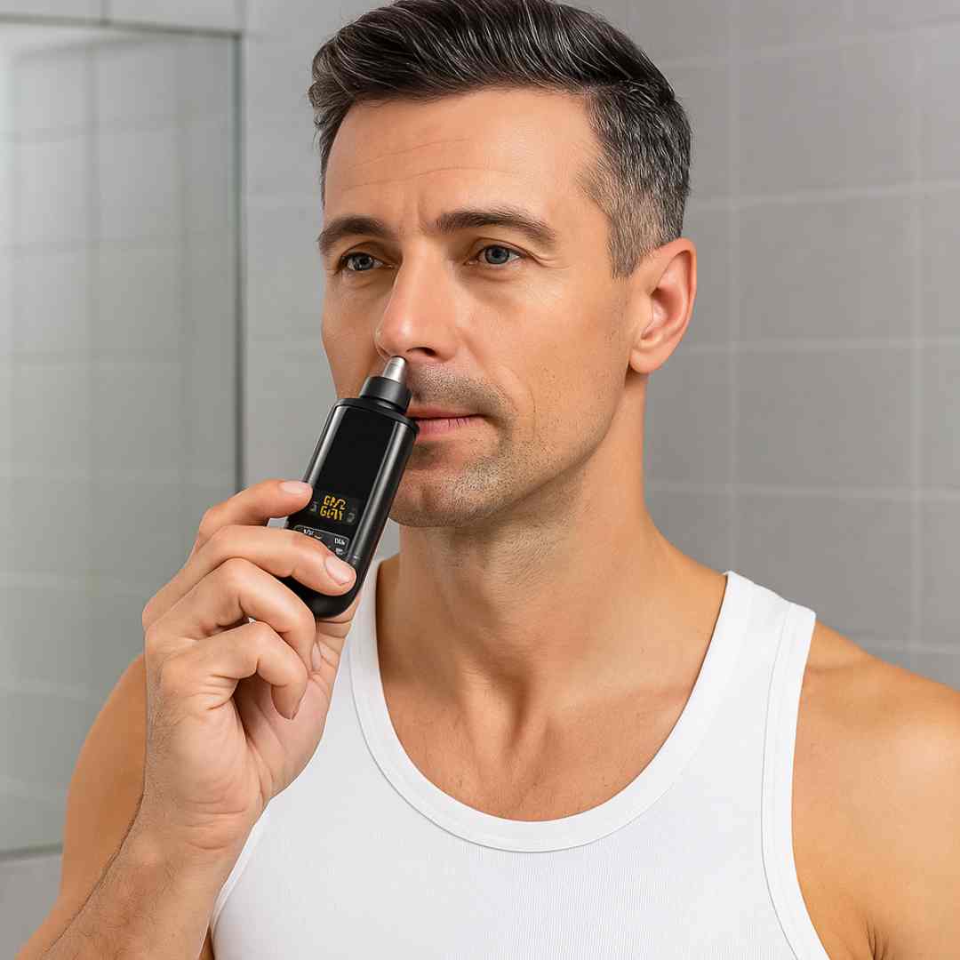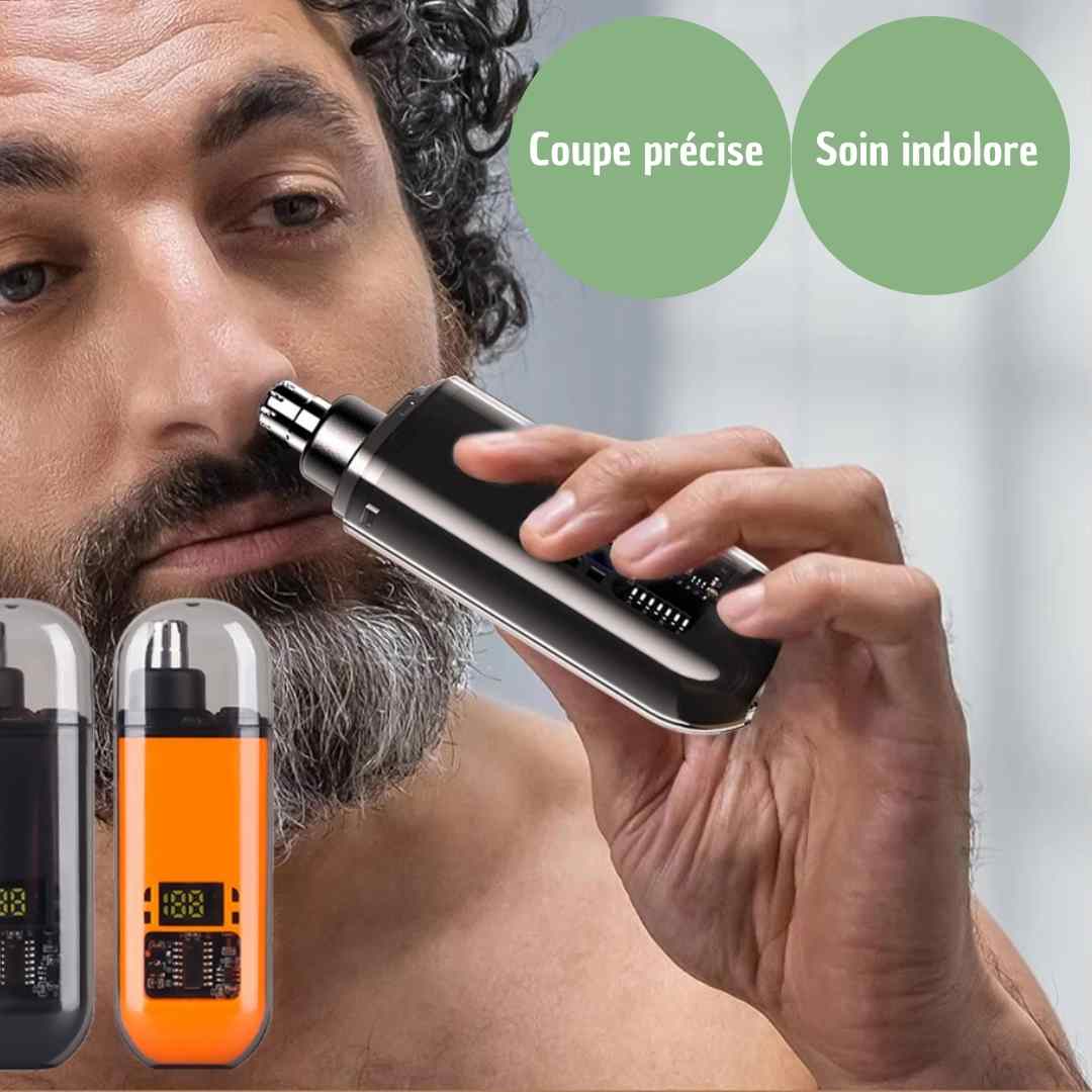 Grâce à la coque protectrice de notre tondeuse nez , hygiène et élégance ne riment pas avec douleur ...